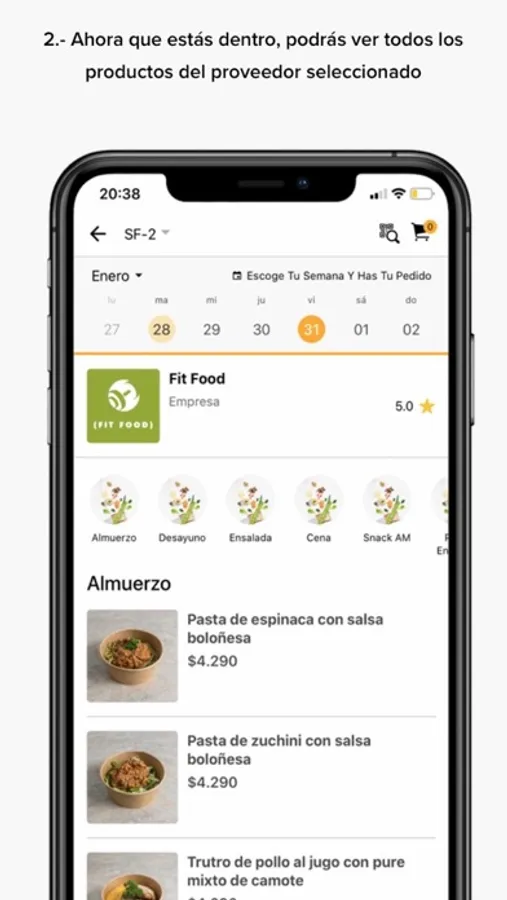 Entregamos más de 200 alternativas entre Almuerzos, Snacks y mucho más. Programa tus comidas para la semana, y deja en nuestras manos la gestión de tu alimentación. (Con gustitos incluidos :P​).