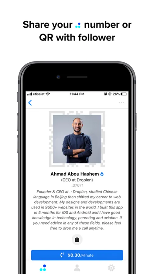 You get special Droplen number and QR to share with people who want to, also you will be able to disable direct calls or set a call price based on the value you believe you offer. then you receive voice calls from your fans with full privacy protection and time respecting.