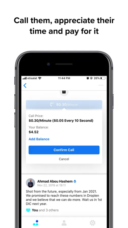If you want to reach a pro users who offers you a great value and you want to appreciate their time, you can easily ask for their Droplen number to drop them paid call and guarantee being answered without wasting their time, or you can just send them a request to call you back so they can call in their free time.