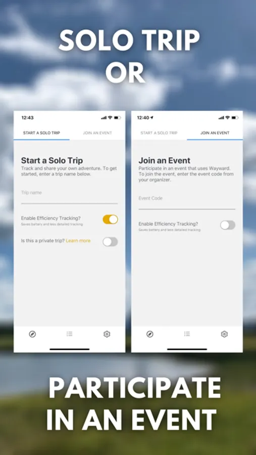Wayward is a Free app to track and share your adventures. Submit check-ins, track your trip offline, and easily stop tracking when your trip is complete.
