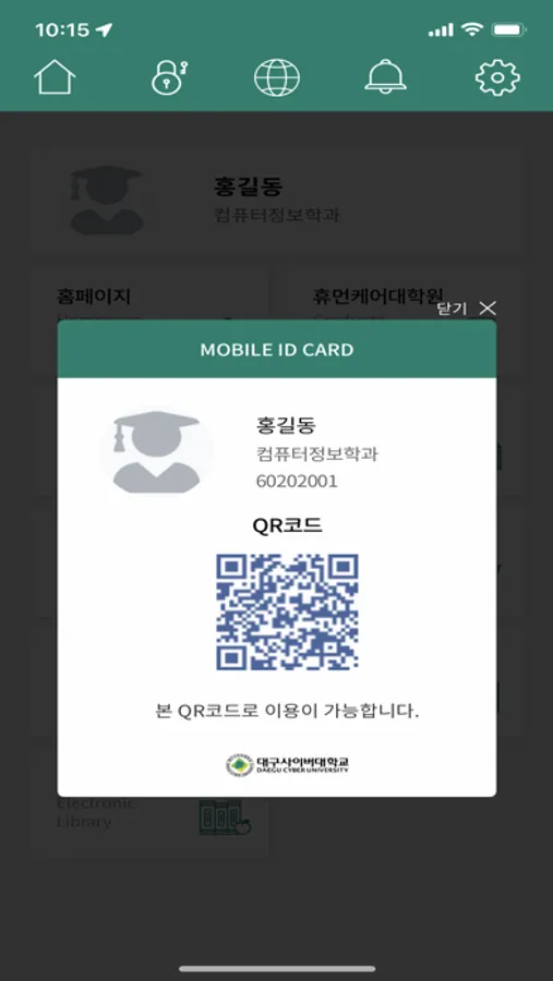 대구사이버대학교 스마트포털 시스템 전용 앱으로 모바일 웹페이지와 동일한 학습환경과 지문인증을 제공합니다.