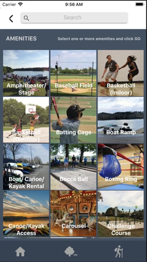 - Search for parks by types of specific amenities, including playgrounds, athletic fields, courts, and dozens of other recreational activities.