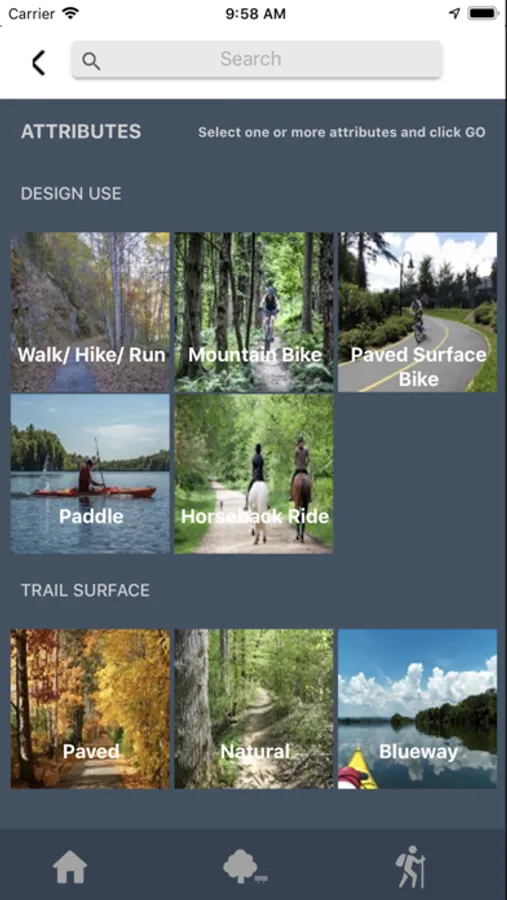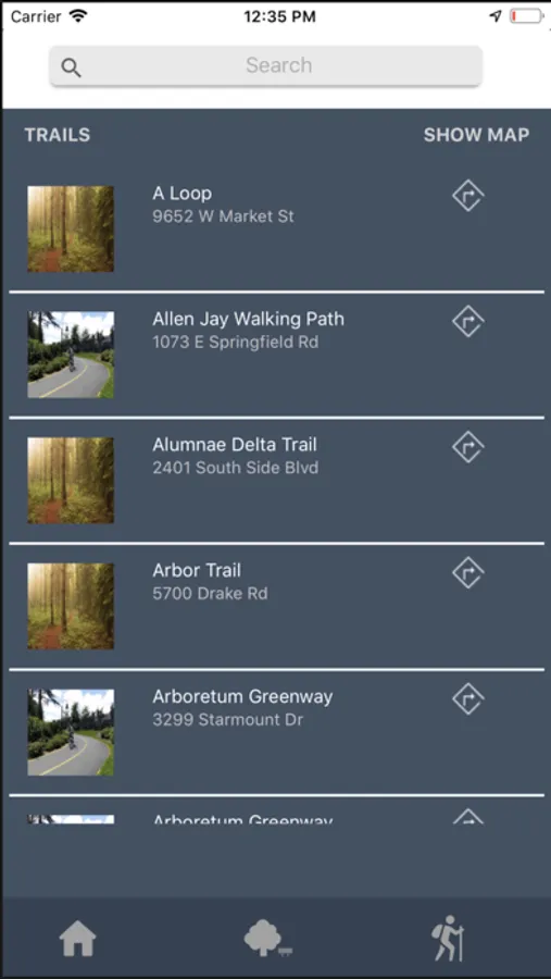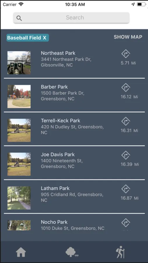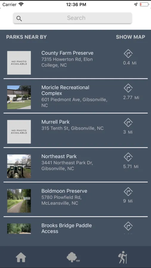 - Search for parks and trails nearest your current location.