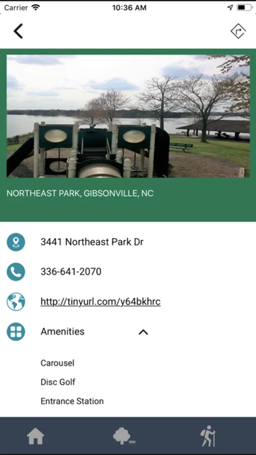 - Once you locate the desired park or trail, click the included links to get driving directions to your destination.