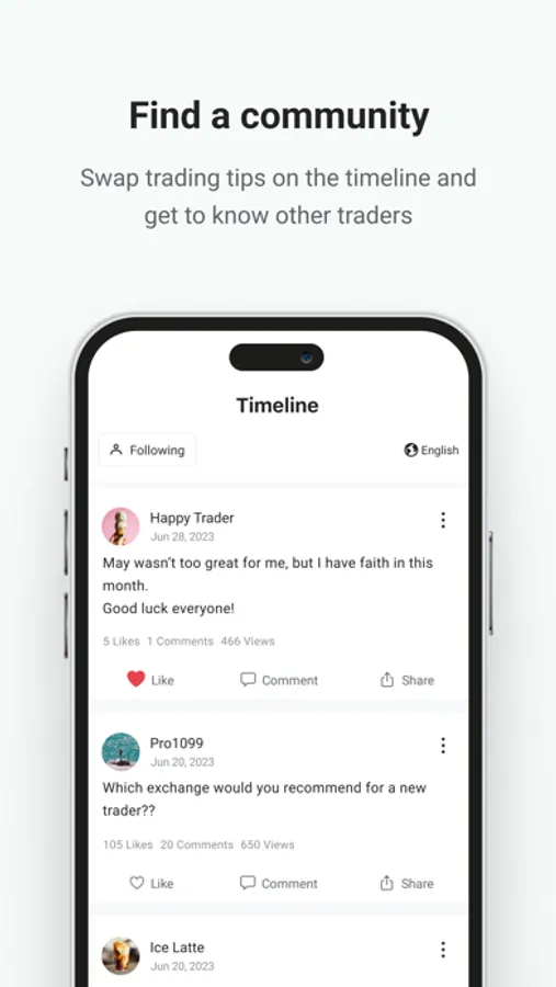 Check out the in-app timeline to see posts, updates, and get news from League of Traders. Receive updates about new competitions and current standings, or engage with other traders from around the world.