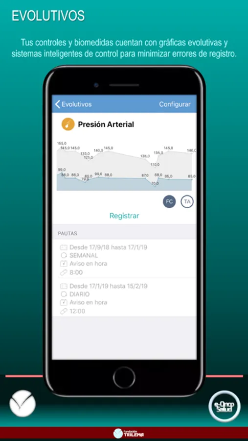 Toda la información que se introduce en la aplicación queda registrada en un espacio cloud denominado “carpeta personal”, alojado en servidores seguros y accesible vía web tanto por el usuario –paciente- como por su profesional o médico autorizado. Esta carpeta permite valorar la evolución en el tiempo y compartirla como registro del historial de autoseguimiento del paciente.