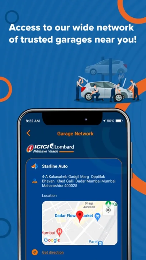 Cashless Garage Network- Motor insurance (bike and car) policyholders can access a comprehensive list of cashless garages through the app.