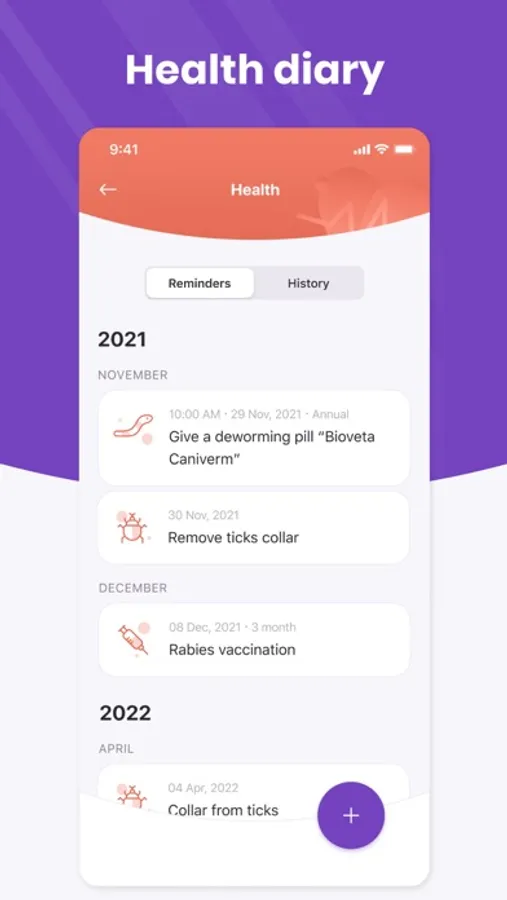 With the GoDog Health Diary, you'll never forget to take care of your pet. Handy reminders help you keep your dog healthy. Just create a note to visit the vet on time or to take a pill for treating worms or ticks.