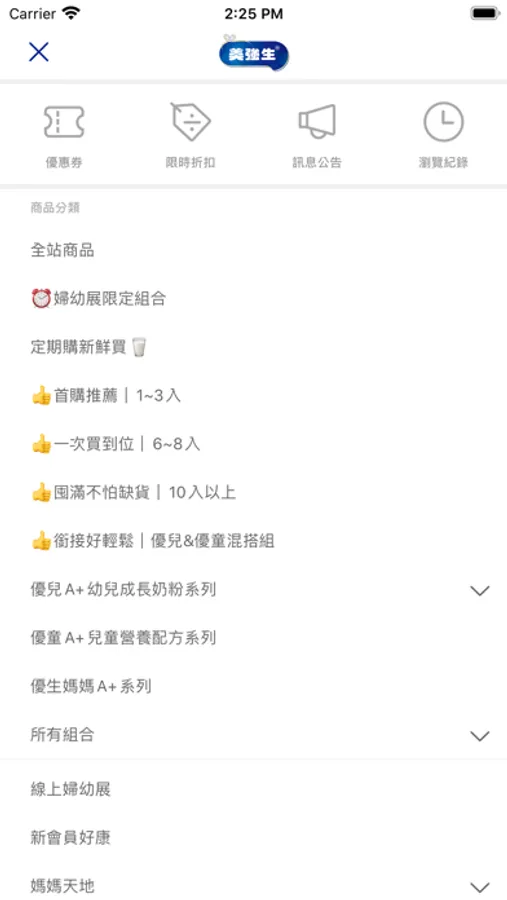 美強生品牌購為美強生營養食品公司的直營購物APP,不定時推出限時優惠,APP會自動推播訊息,讓你不再錯過任何美強生的好康活動!除了優惠通知,我們同時還會提供您關於美強生產品的小知識以及實用的資訊,成為您與小寶貝在成長路上的好幫手!