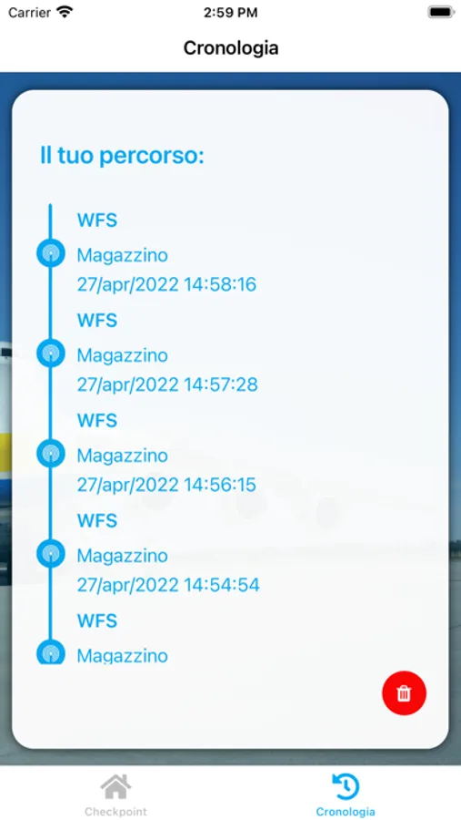 L’applicazione traccia i seguenti punti di passaggio: