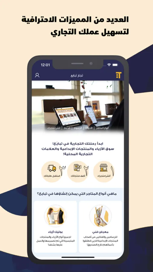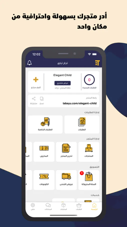 يساعدك تطبيق (تجار تبايُع) على إدارة متجرك بسهولة، واستقبال طلباتك، والتواصل مع المشترين بفعالية وين ما تكون!