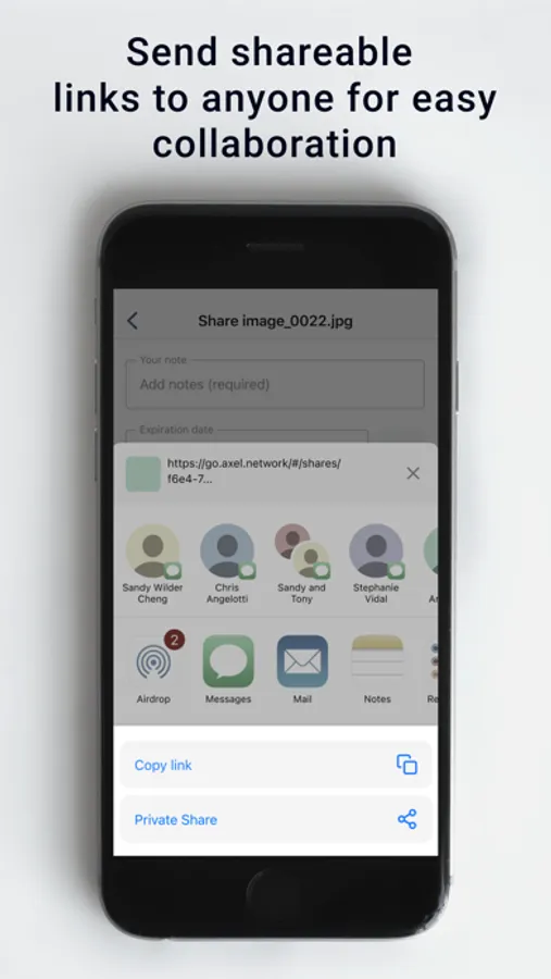 · Send shareable links to anyone for easy collaboration, even if they don’t have an AXEL account