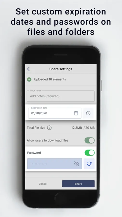 · Set custom expiration dates and passwords on links to enhance security for your files