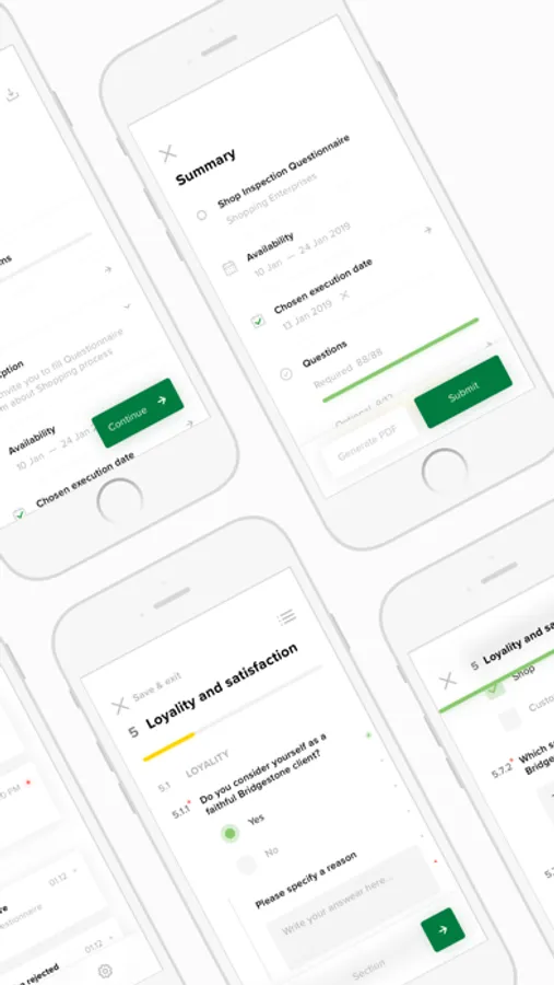 - Offline use (an internet connection is necessary to install the application/receive the questionnaires assigned to you and to send the results back for processing)
