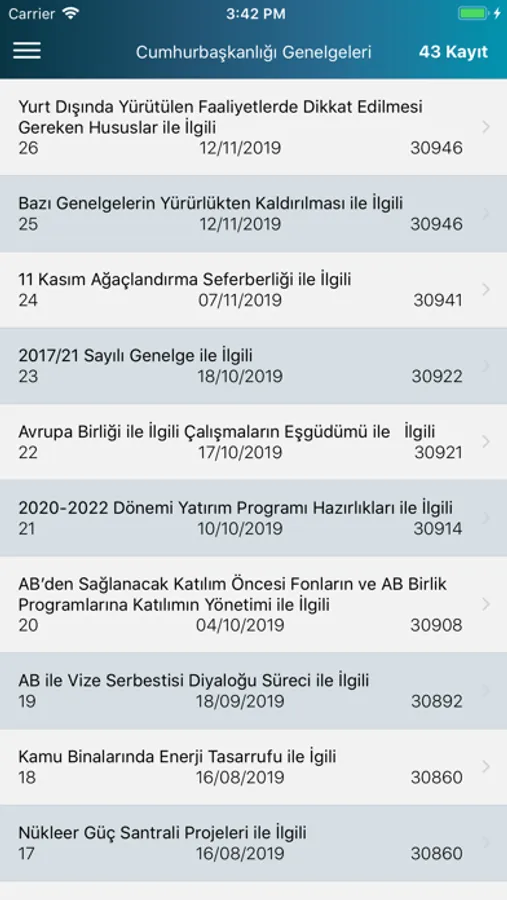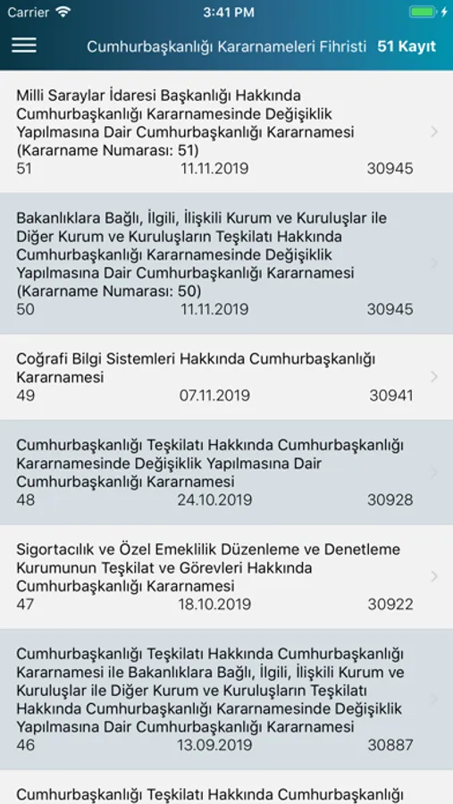 Bu mobil uygulamayla; Resmî Gazete’de yayımlanan Kanunlar, Kanun Hükmünde Kararnameler, Cumhurbaşkanlığı Kararnameleri, Cumhurbaşkanlığı Yönetmelikleri, Tüzükler, Bakanlar Kurulu Yönetmelikleri, Cumhurbaşkanı Kararları, Cumhurbaşkanı Genelgeleri, Kurum ve Kuruluşlar ile Üniversite Yönetmelikleri ve 1/1/2004 tarihinden sonra Resmî Gazete’de yayımlanarak yürürlüğe giren Tebliğlerin tek metin haline getirilip değişiklikleri işlenmiş güncel metinlerine ücretsiz olarak ulaşılabilmektedir.