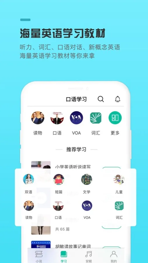 1. 地道学习素材,覆盖日常会话、商务职场、旅游出行,校园生活等各类场景。