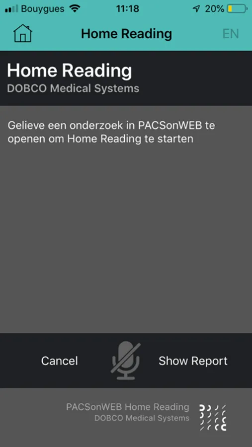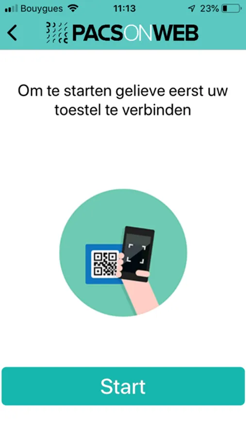 2. Through this app, he scans the displayed QR code in PACSonWEB and his account is linked. He can make a (preliminary) report of any exam using real-time speech recognition on the smartphone.