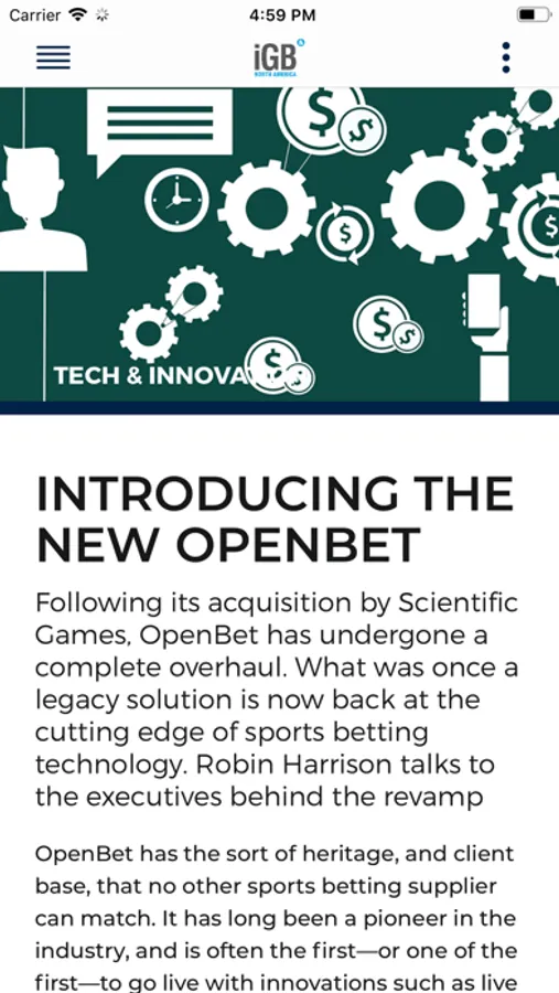 Download the iGB North America app today for FREE high quality news, information, analysis and data on the North American iGaming sector. We cover sports betting, regulation, tech, innovation, lottery, casino, payments, marketing, affiliates and much more. If you work in the iGaming industry, and are operating in the US or looking to enter the market, the iGB NA app is made for you!