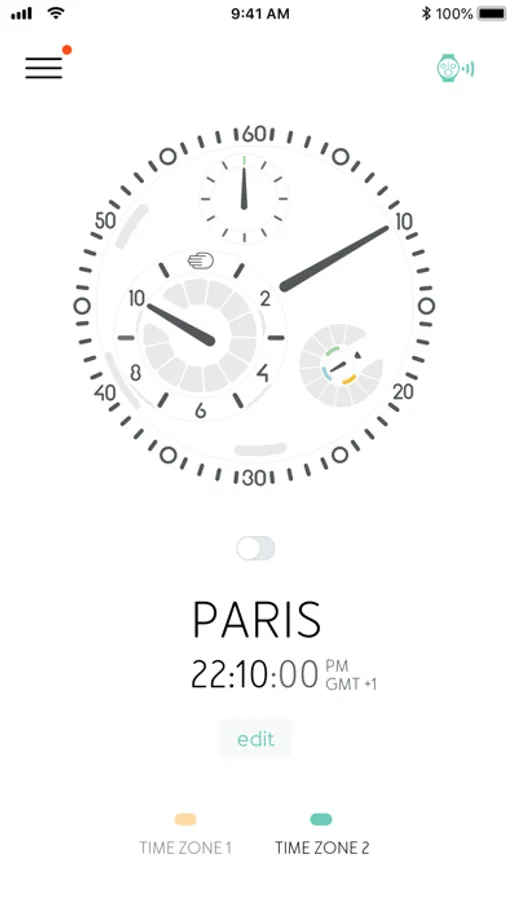 Information about your watch, its condition, as well as a stop seconds function, the energy status (opening or closing the shutters) and a bespoke triple tap shortcut.
