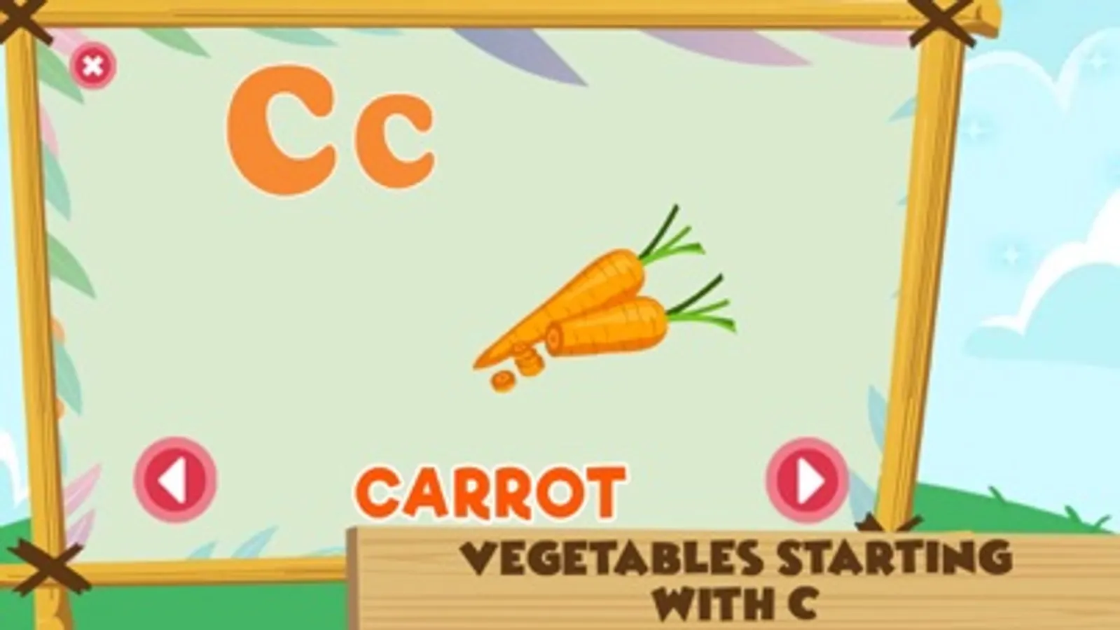 This app includes a separate list for animal names that start with c along with their pronunciation. There’s a similar one for birds. Not only this but vegetables that start with c, fruits that start with c and tapping on the things brings up the names of the objects starting with c as initial letter.The app is self-contained and doesn’t show up any options or settings screens, making it very child-friendly. It is fun and engaging and the sounds keeps children engaged.