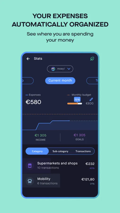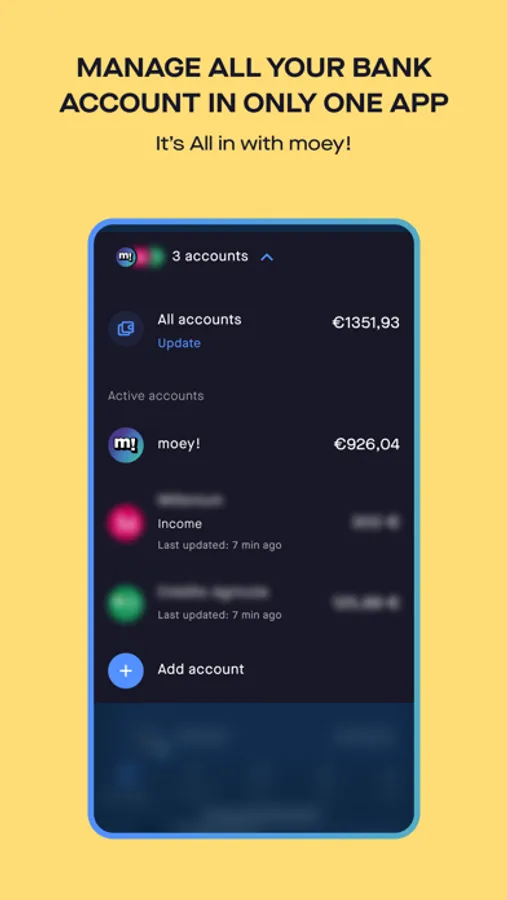 - Manage all your bank accounts: it’s All In, use the moey! app to manage bank accounts from all your banks. Make payments with the app, analyse your expenses and create saving goals for all of your accounts.