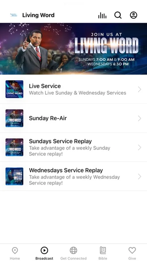 • Push Notifications: stay up to date with what’s going on at Living Word Christian Center.