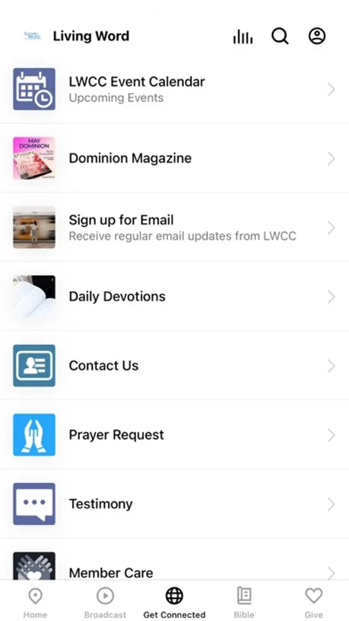 • Connect: stay connected with Living Word Christian Center where ever you are.