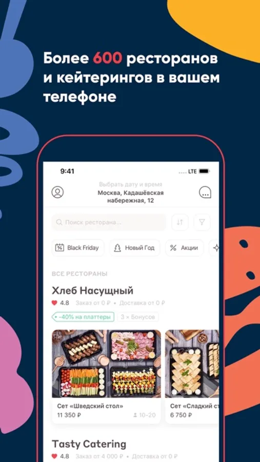Заказывайте в приложении самостоятельно или оставляйте заявку, чтобы получить несколько вариантов меню на ваше мероприятие.
