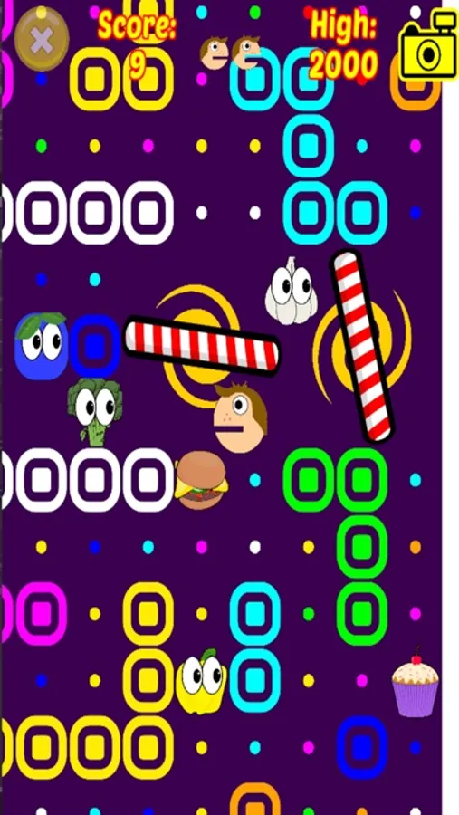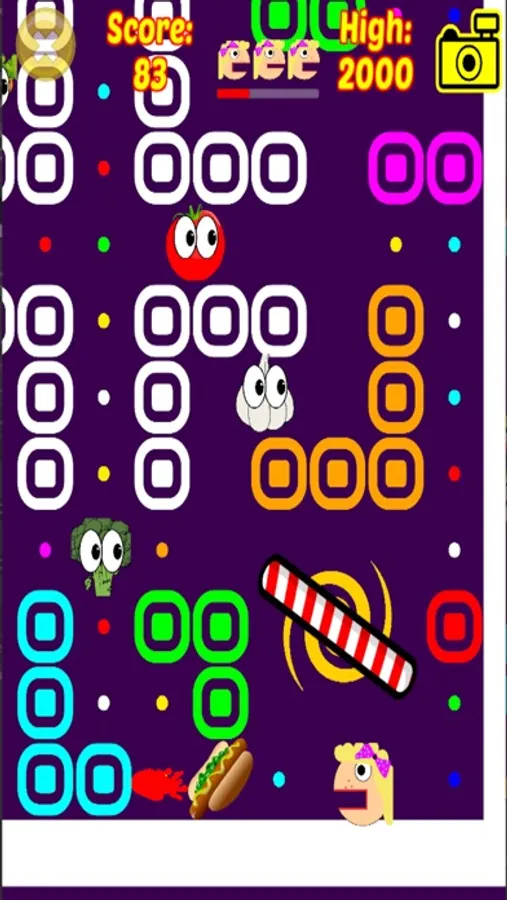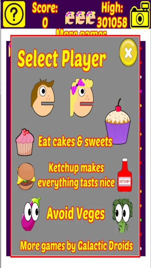 This is an old school, retro style arcade game where you have to eat all the tasty sweets and avoid all the nasty vegetables.