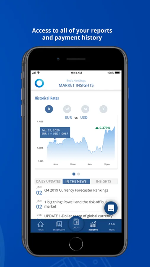 Manage your account and global payments wherever and whenever you want. The Monex USA app provides 24x7 access to view your real-time payment status and full payment history directly from your mobile device. Market insights and news updates will keep your FX awareness up to date to protect your profits and navigate currency fluctuations.