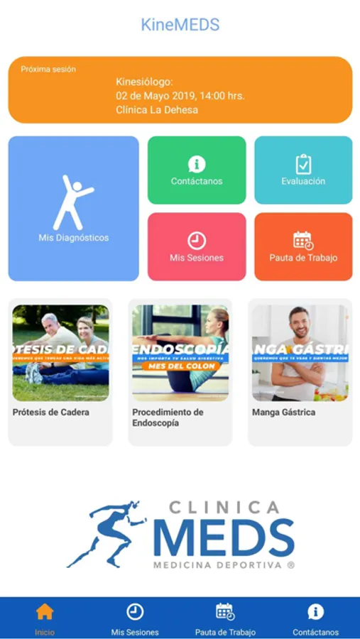 En Clínica MEDS nos interesa cumplir con tus objetivos de salud y acompañarte en tu proceso de rehabilitación. Es por eso que esta nueva App diseñada por expertos y los líderes en medicina deportiva, te permitirá tener acceso a todo lo que necesitas saber sobre tu lesión, te apoyará en la forma de realizar correctamente tus ejercicios, te brindará toda la información sobre tu agenda de sesiones y realizará seguimiento a tus avances.