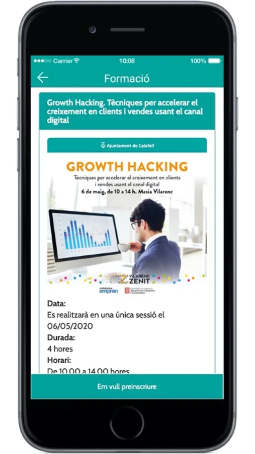 Inscriu-te a les ofertes i cursos on vulguis i quan vulguis des del teu mòbil. No et perdis cap informació important consultant l’apartat de missatgeria personalitzada de la nostra app.
