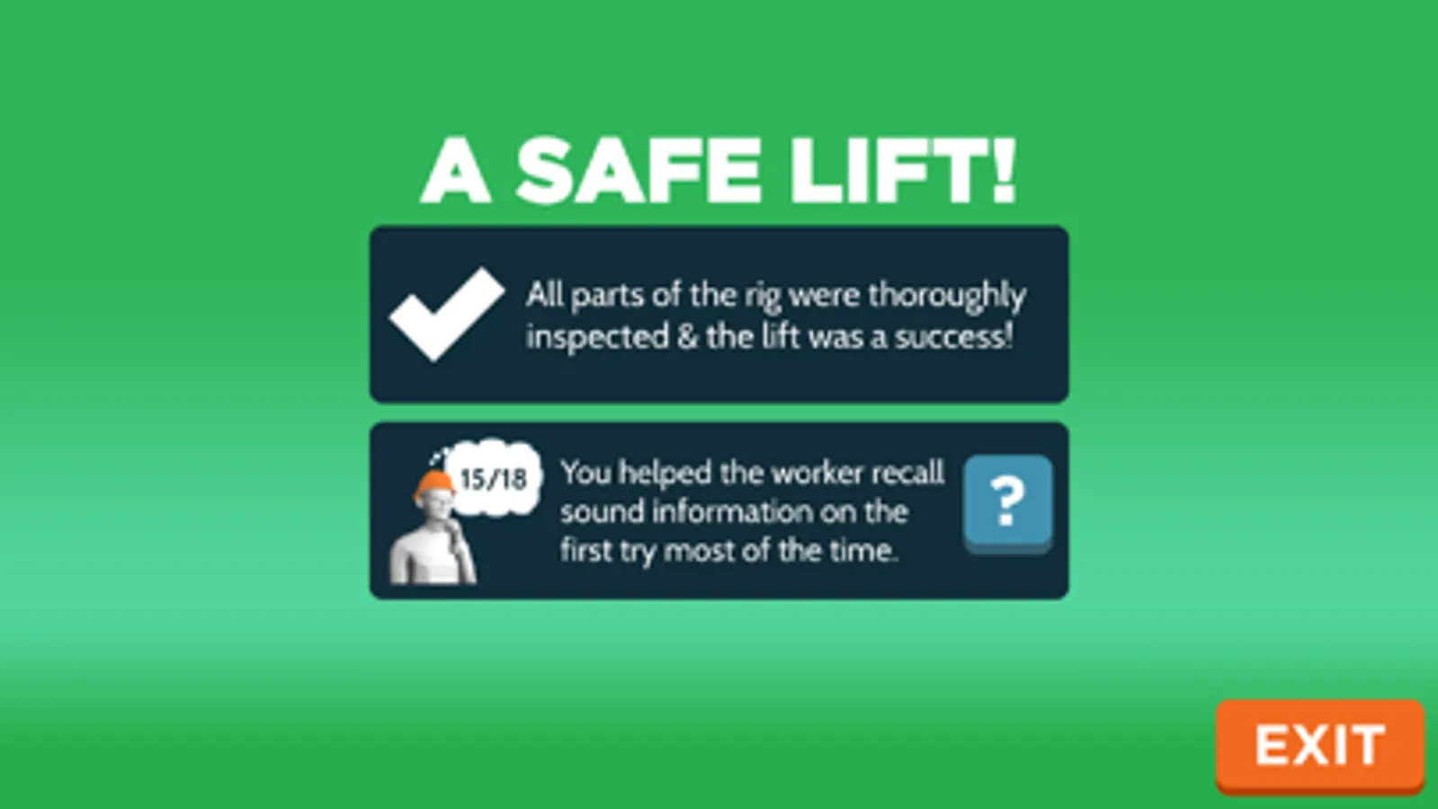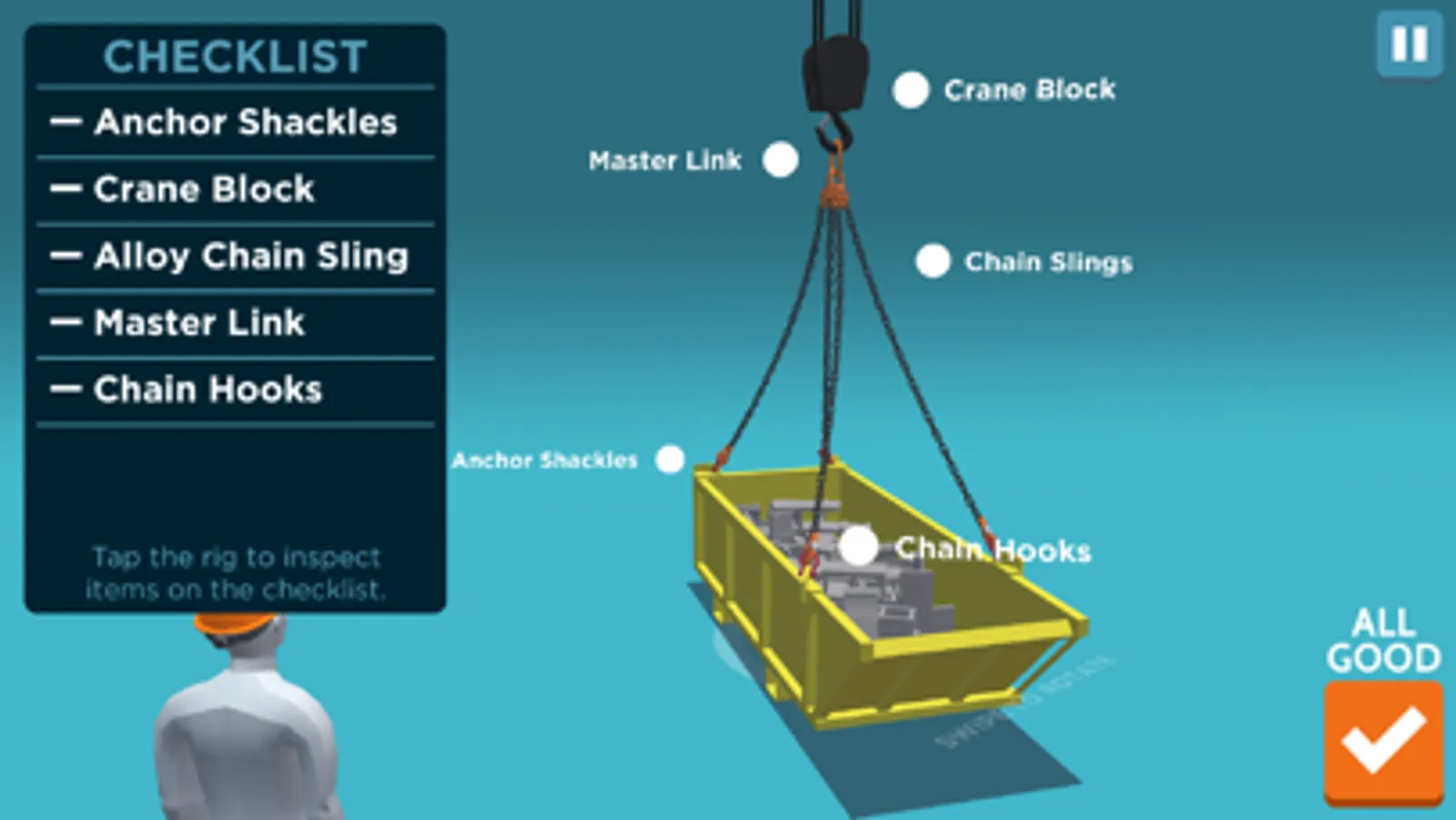 The certificate recognizes the user's in-app ability to review content & inspect virtual equipment. Safe rigging for construction is extraordinarily complex and this app is not intended to replace formal training & certification.