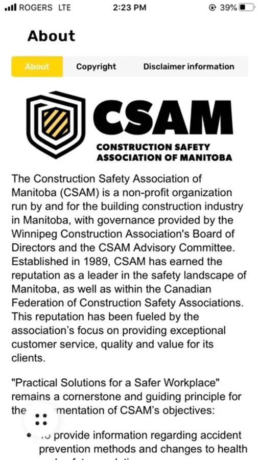 Although every effort is made to ensure the accuracy, currency and completeness of the information, neither CSAM or CCOHS can guarantee, warrant, represent or undertake that the information provided is correct, accurate, or current. Neither CSAM or CCOHS is liable for any loss, claim, or demand arising directly or indirectly from any use or reliance upon the information.