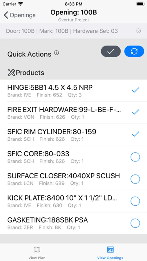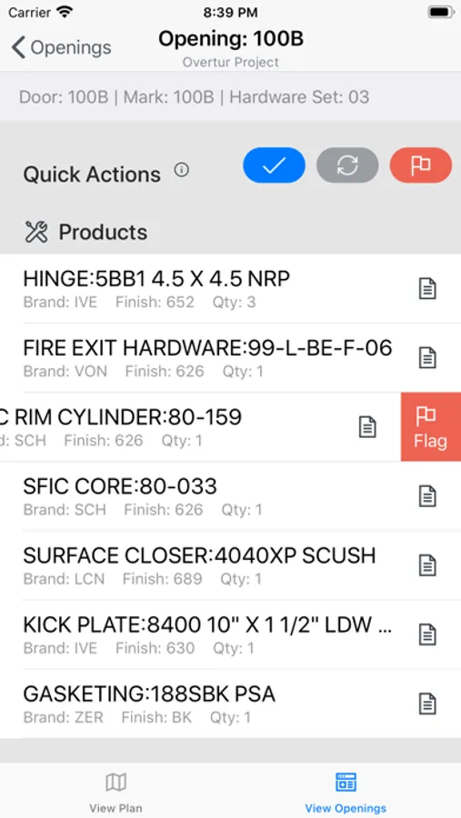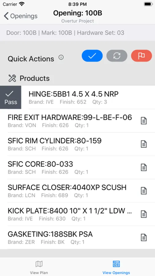 The Punch List tool enables users to walk down a completed installation with a set of plans and the hardware sets and products for the project. Users can accept or flag the door hardware on a door, or the opening itself, then further add notes, take photos, attach pre-snapped photos, or add voice memos.