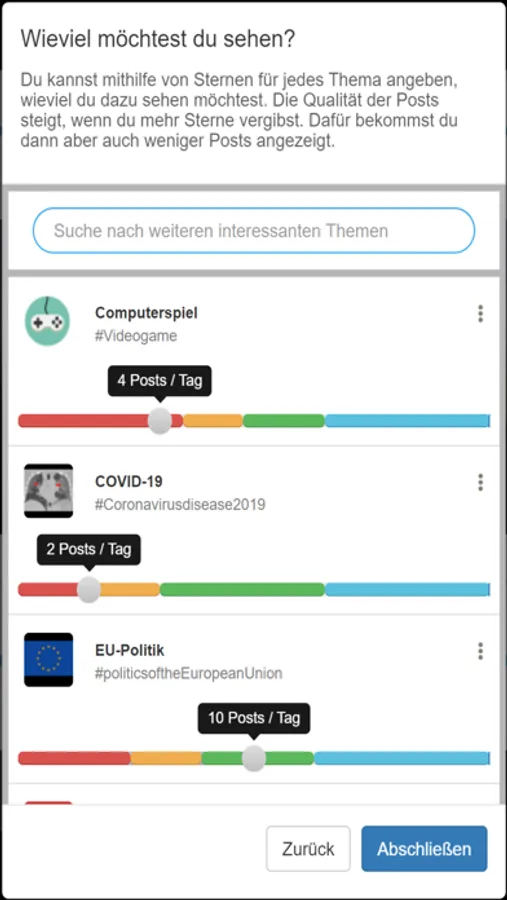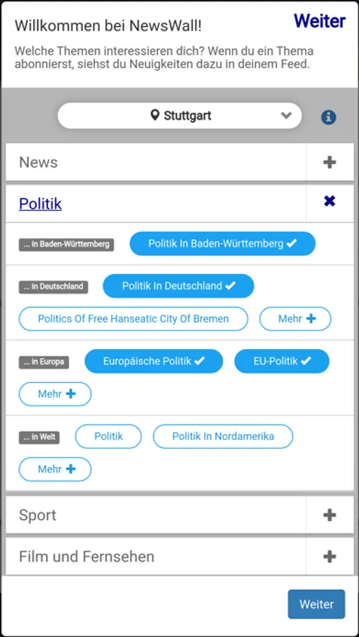 You can subscribe to topics from the areas of general news, politics, business & technology, brands & products, film & television or sports and also set how much you want to see.