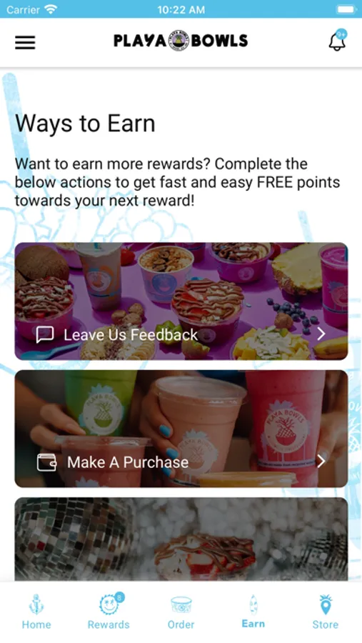 Playa Bowls Rewards App: Check-in with the app at the in-store tablet, check your rewards and more!