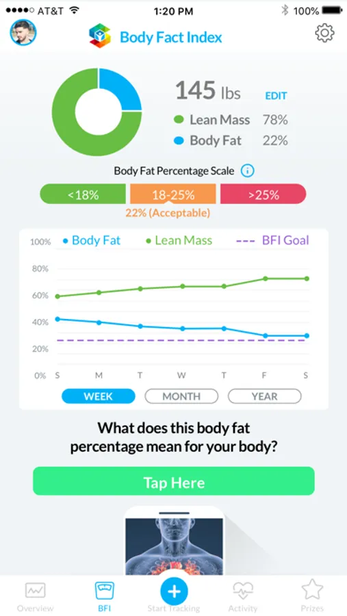 Have you heard of BFI? Body Fact Index is the first true innovation in body composition since the highly inaccurate BMI was developed in the 1830's. BFI predicts your body fat and lean mass percentages, is up to 98% accurate, and does not require any wearables - you just need your phone.