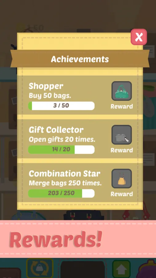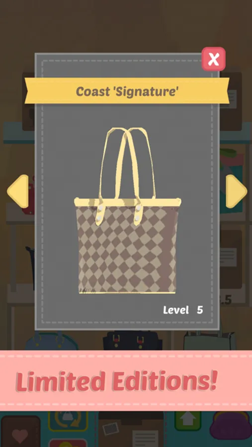 Start your handbag gallery and collect beautiful and rare designer luxury handbags. Begin with a basic bag, merge it with another to create a new bag. Match and merge more bags to unlock new handbags and add them to your collection.