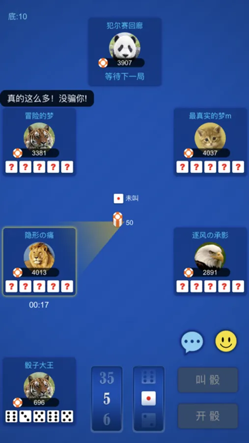 大话骰是酒吧,夜场非常普遍的休闲游戏。是一款考验酒量,胆识,逻辑力,算术的游戏。每一位参加者有一个藏有五颗骰子的骰盅。