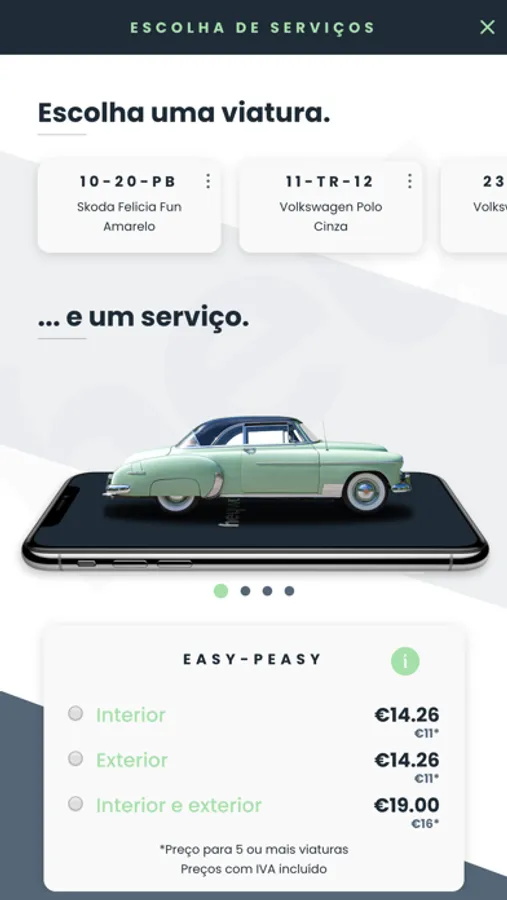 Depois de criar um perfil na HeyWash®, pode começar a utilizar o nosso serviço. Defina o local onde o seu carro está e chame o HeyWasher, ou em alternativa, poderá agendar o serviço em data, hora e local da sua conveniência. Caso queira uma limpeza interior e exterior, temos várias soluções para entrega das chaves do seu carro. Pague através da app por MB WAY ou Ref. Multibanco. Simples.