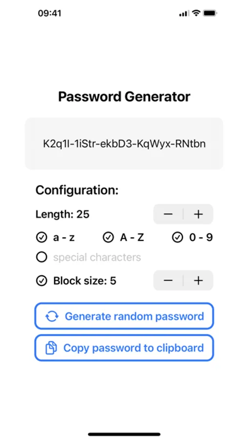 - choose between lowercase letter, uppercase letters, numbers and special characters