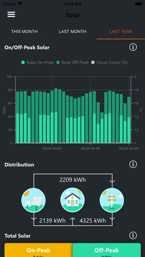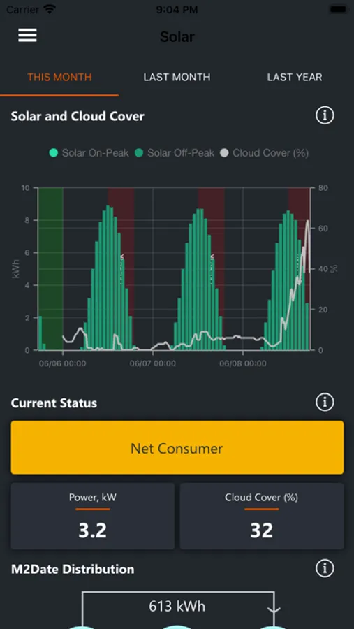 Where the data is supported disaggregation information shows where energy is being consumed and how energy is distributed between the grid, the home and solar (if installed).
