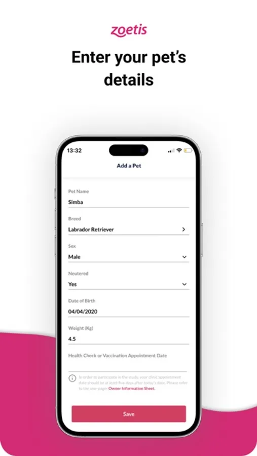 If your veterinary practice is participating in the research study, enter the unique study code they provide you with into the app and then register your details and those of your dog. You will be required to submit your answers to a simple yet insightful quality of life survey of your dog and to discuss the results with your veterinarian during your dog’s next routine health check & vaccination appointment. A notification on your phone will ask you to confirm the upcoming vet visit. You will also be notified when the quality of life survey is due and reminded the day after if you missed the due date to take it.