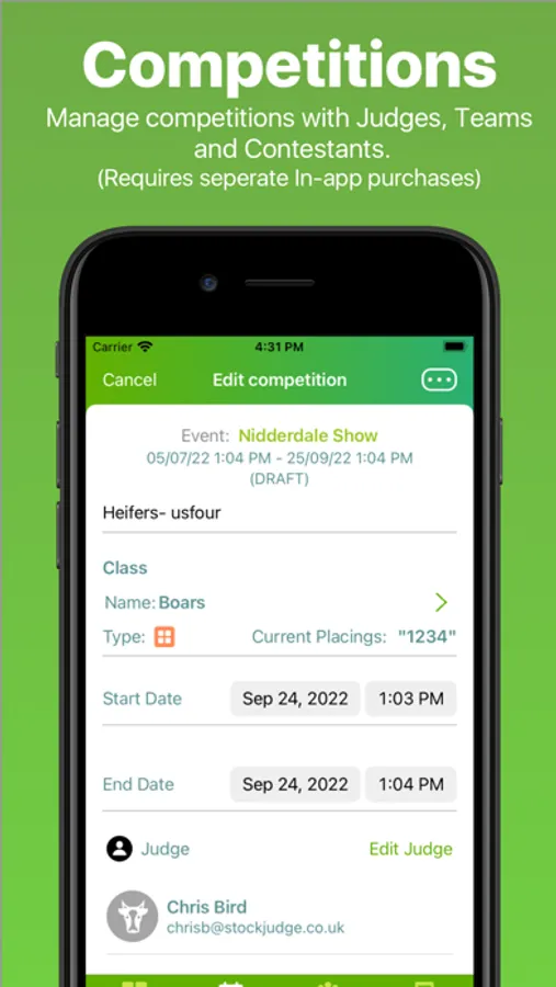 - Easily enter judges placings and cuts