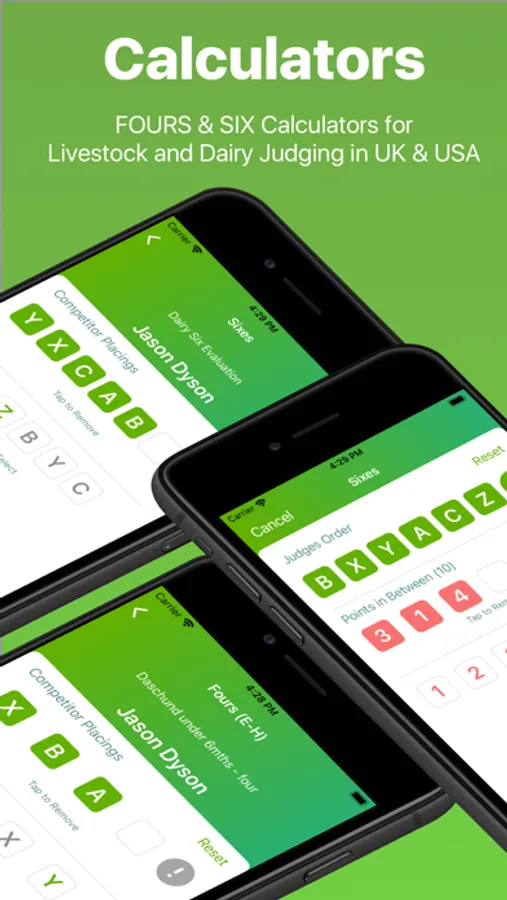 No more clipboards, sheets of paper , spreadsheets or cards! Stock Judge automatically calculates scores based on the official placings and cuts. Works with Fours (4-H) & Sixes (Dairy) scoring systems across the world.