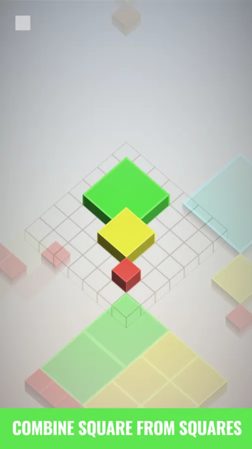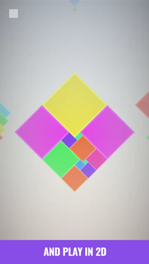 Goal is simple: to make a square from squares by fitting them all on the grid. You can do that in 2D or 3D if you want an additional spatial challenge. Either way, it's not that easy as it sounds!