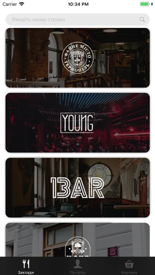 - Зручний пошук на головній сторінці по меню всіх закладів: ПАБу та КЛУБу, Пасажу і YOUNG. Ви тільки починаєте вводити назву, як страви з усіх закладів, що потенційно підходять, починають виводитись на сторінці - ми цінуємо ваш час. Наприклад, вам хочеться скуштувати страву з куркою, в полі Пошуку починаємо вводити “курка” и все готово!