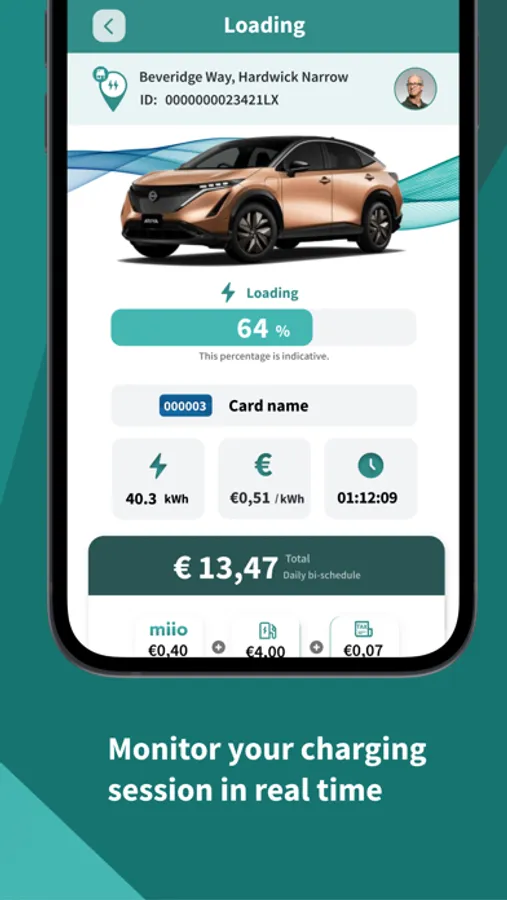 - Charge your vehicle through the app or physical card;