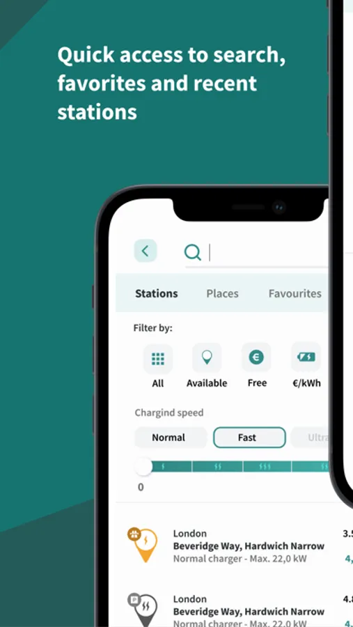 - Save your favorite or recent charging stations;